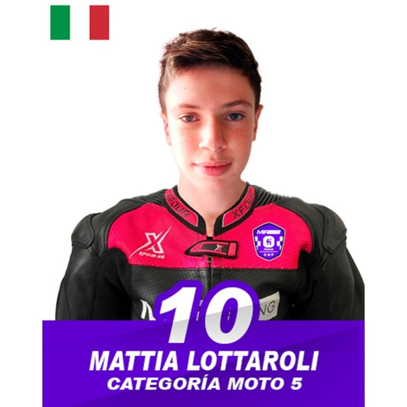 Mattia Lottaroli es un piloto italiano que ya participó en la temporada 2024 en la categoría Moto5, donde logró finalizar en la 14ª posición, demostrando su capacidad para mantenerse competitivo en una parrilla de pilotos altamente talentosos. A lo largo de su primera temporada, Mattia mostró una notable regularidad, aprendiendo de cada carrera y mejorando su rendimiento en cada oportunidad.