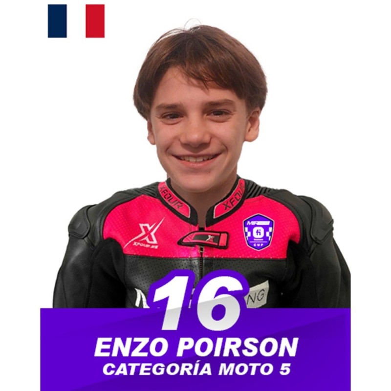 Enzo Poirson es un piloto francés que hará su debut en la temporada 2025 en la categoría Moto5. Con una gran pasión por el motociclismo y una preparación constante, Enzo llega al campeonato con la motivación de destacar desde su primer año.