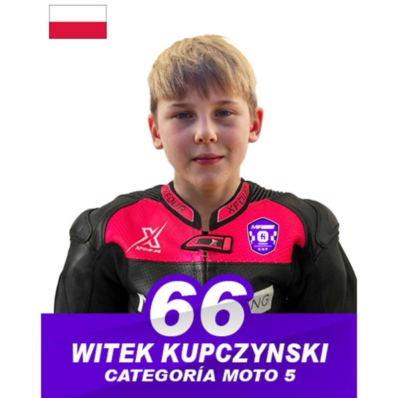 Witek Kupczynski es un piloto polaco que llega a la temporada 2025 con una impresionante trayectoria. Tras consagrarse como campeón de la categoría GP10 en la temporada 2024, Witek ha demostrado ser uno de los pilotos más talentosos y competitivos del campeonato. En 2023, su primer año en GP10, terminó en la 29ª posición, pero su evolución fue notable y su determinación lo llevó a la cima en 2024, donde se coronó campeón, destacando por su consistencia y habilidad en cada carrera.