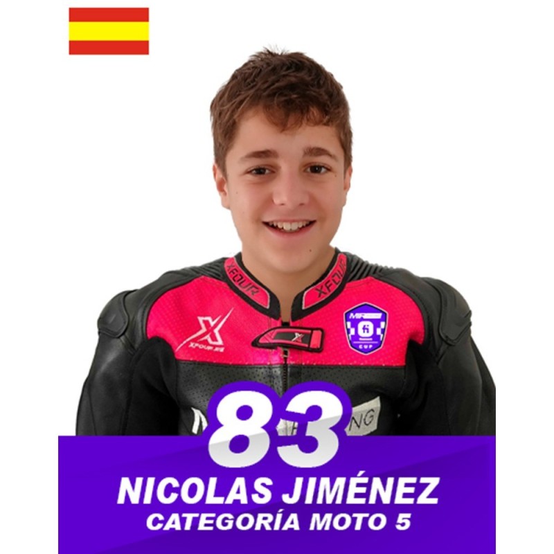 Nicolás Jiménez es un piloto andaluz que ha ido ganando notoriedad en el campeonato gracias a su constancia y dedicación. En la temporada 2023, participó en la categoría GP10, donde se destacó por su capacidad para adaptarse rápidamente a los circuitos y su habilidad para mantener un ritmo constante durante todas las carreras. Con un rendimiento sólido y una mentalidad competitiva, terminó el campeonato en la octava posición, lo que reflejó su creciente experiencia y habilidad.