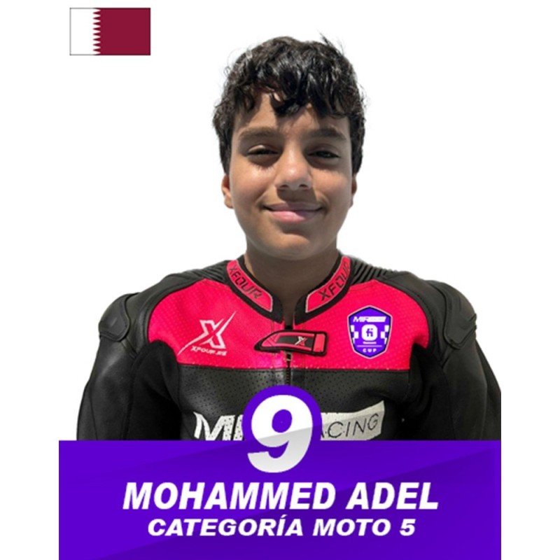 Mohammed Adel, piloto qatarí, que empieza su segunda temporada consecutiva en la categoría Moto5. A pesar de una temporada 2024 de mucho aprendizaje terminando en la 26ª posición, su actuación mostró un fuerte potencial de crecimiento con un pilotaje serio y una gran capacidad para aprender rápidamente de cada carrera.