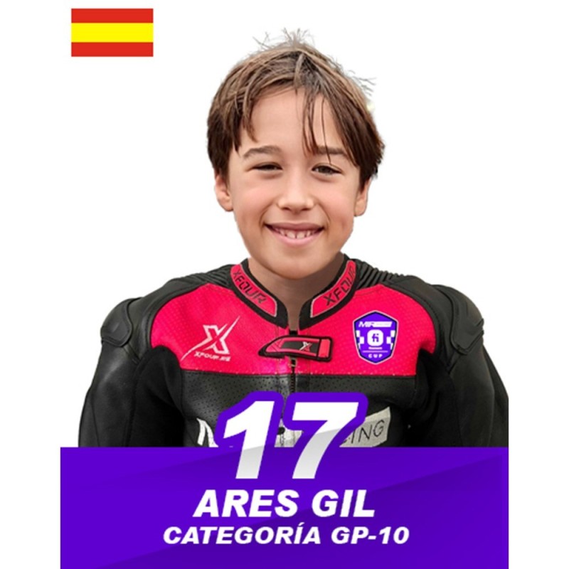 Ares Gil, piloto catalán que inicia su segunda temporada en la categoría GP10 tras un 2024 en el que terminó en la 20ª posición debido a una lesión que lo mantuvo fuera de la competición durante varias carreras. A pesar de los desafíos, Ares demostró una gran determinación y capacidad para adaptarse a las circunstancias, manteniendo su competitividad en las carreras que pudo disputar.