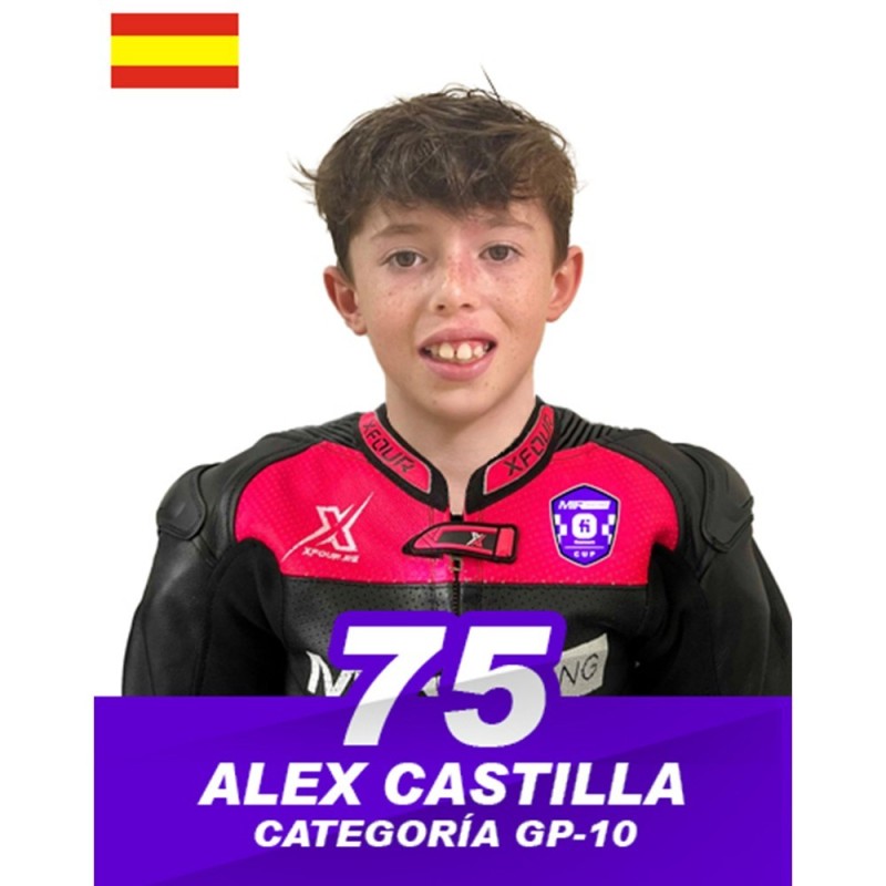 Alejandro Castilla, piloto madrileño que debuta en la temporada 2025 en la categoría GP10 tras haber demostrado su talento en las categorías inferiores. En las dos temporadas previas, Alejandro brilló en la categoría Minimoto, terminando en 2ª posición tanto en 2023 como en 2024. Estos excelentes resultados evidencian su competitividad y su capacidad para mantenerse entre los mejores, siempre con una actitud de superación constante.
