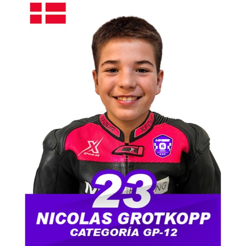 Nicolás Grotkopp, piloto español con nacionalidad danesa, hará su debut en la temporada 2025 en la categoría GP12. Con una gran pasión por el motociclismo y una sólida preparación, Nicolás llega al campeonato con la motivación de demostrar su talento y afrontar este nuevo reto con determinación.