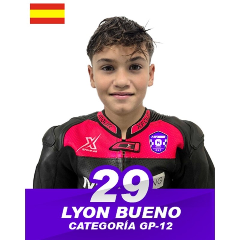 Lyon Bueno, piloto andaluz nacido en Andalucía, hará su debut en la temporada 2025 en la categoría GP12. Con una gran pasión por el motociclismo y un enfoque comprometido en su preparación, Lyon llega al campeonato con la motivación de demostrar su talento desde su primer año.
