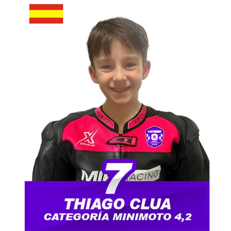 Thiago Clua es un piloto español que hará su debut en la temporada 2025 en la categoría Minimoto. Con una gran pasión por el motociclismo y una sólida preparación, Thiago llega al campeonato con la motivación de demostrar su talento y afrontar los retos de esta categoría desde su primer año.