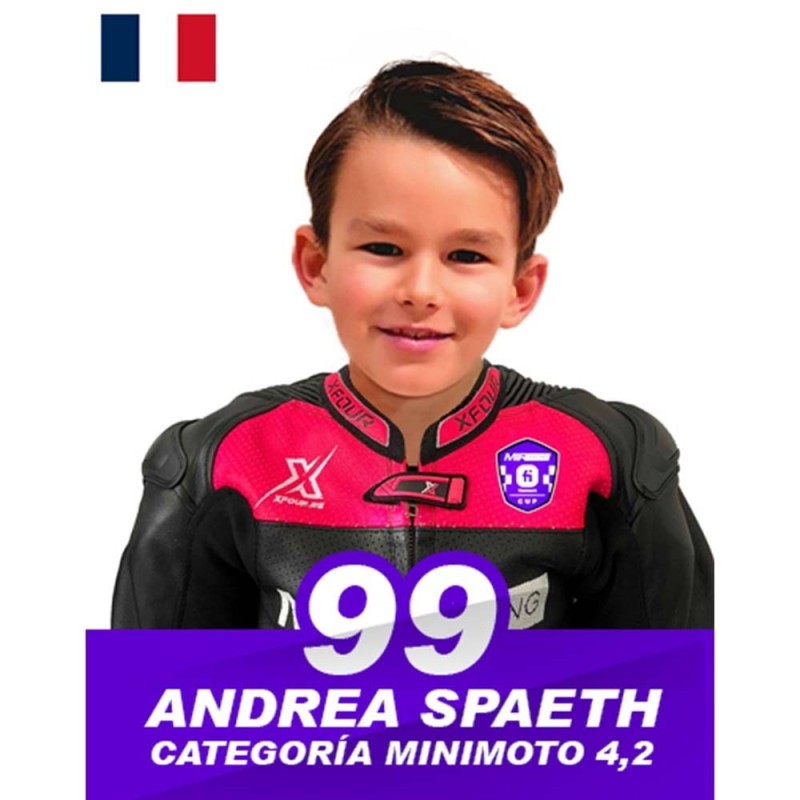 Andrea Spaeth es un piloto francés que debuta en la temporada 2025 en la categoría Minimoto. Con una gran pasión por el motociclismo y una fuerte determinación, Andrea llega al campeonato con el objetivo de demostrar su talento y enfrentar los retos que ofrece esta competitiva categoría.