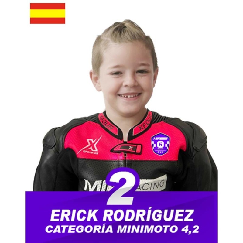 Erick Rodríguez es un piloto español que debuta en la temporada 2025 en la categoría Minimoto. Con una gran pasión por el motociclismo y una fuerte determinación, Erick llega al campeonato con el objetivo de demostrar su talento y enfrentar los retos que ofrece esta competitiva categoría.