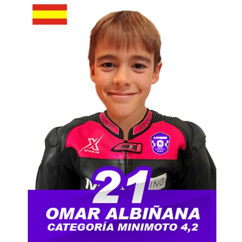 Omar Albiñana, piloto español, inicia su segunda temporada en la categoría Minimoto tras haber terminado en una destacada 7ª posición en 2024. Su rendimiento el año pasado demostró su gran capacidad para competir al más alto nivel, destacándose por su consistencia y habilidad para mantenerse entre los mejores pilotos de la categoría.