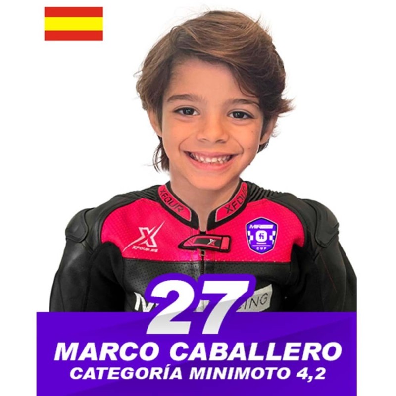 Marco Antonio Caballero es un piloto español que debuta en la temporada 2025 en la categoría Minimoto. Con una gran pasión por el motociclismo y una fuerte determinación, Marco llega al campeonato con el objetivo de demostrar su talento y enfrentar los retos que ofrece esta competitiva categoría.