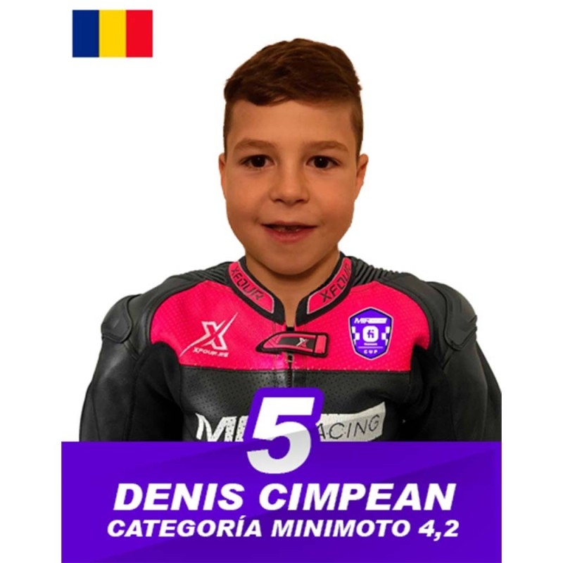 Denis Cimpean es un piloto rumano que compite en la categoría Minimoto en la temporada 2025. Tras una destacada participación en 2024, donde terminó en la 6ª posición, Denis ha demostrado ser un competidor constante y competitivo, siempre en la lucha por los primeros puestos. Su rendimiento el año pasado reflejó su capacidad para mantenerse al nivel de los mejores pilotos de la categoría.
