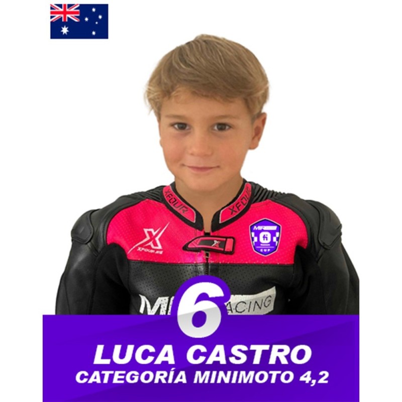Luca Castro es un piloto español que debuta en la temporada 2025 en la categoría Minimoto. Con una gran pasión por el motociclismo y un enfoque decidido hacia su desarrollo, Luca llega al campeonato con la motivación de demostrar su talento y competir al más alto nivel. Aunque es nuevo en Minimoto, su preparación y habilidades lo posicionan como una de las promesas con mayor proyección del campeonato.