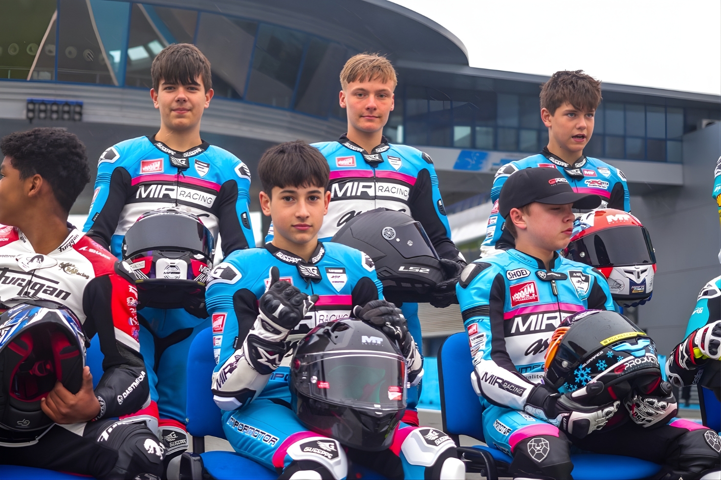 Rafael Budginaite, Miguel Roig, Luuk de Vries y Aatos Pirttinen, que mostraron un alto nivel la pasada temporada en la MIR Racing Cup, llegaban a Jerez con la motivación de dar el máximo en su debut en la categoría ESBK Moto4. Junto a ellos, el piloto italiano Tommaso Pieroni, afronta su segunda campaña junto al equipo con el objetivo de continuar con su evolución en la categoría. En total, 5 pilotos de 5 nacionalidades diferentes, una muestra del perfil cada vez más internacional de los jóvenes talentos que emergen del campeonato.