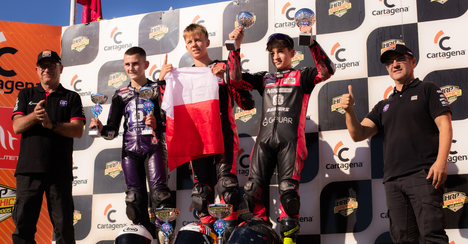 La última jornada de carreras de la MIR Racing Cup 2025 en el Circuito de Cartagena nos deparó un espectáculo para el recuerdo, con multitud de aficionados llenando las diferentes zonas de público para vivir un domingo repleto de acción y batallas sobre el asfalto del trazado murciano. Gran día para los hermanos Kupczynski, con la primera victoria de Witek en Moto5 y el doblete de Andrzej en Promo3, mientras que el italiano Ethan Botti culminó una gran temporada de debut en Moto5 con su tercer triunfo. Luuk de Vries (Promo3) y Pablo Arnedo (Moto5), que llegaban líderes a Cartagena, se proclamaron campeones en sus respectivas categorías y lo celebraron a lo grande rodeados de su afición.