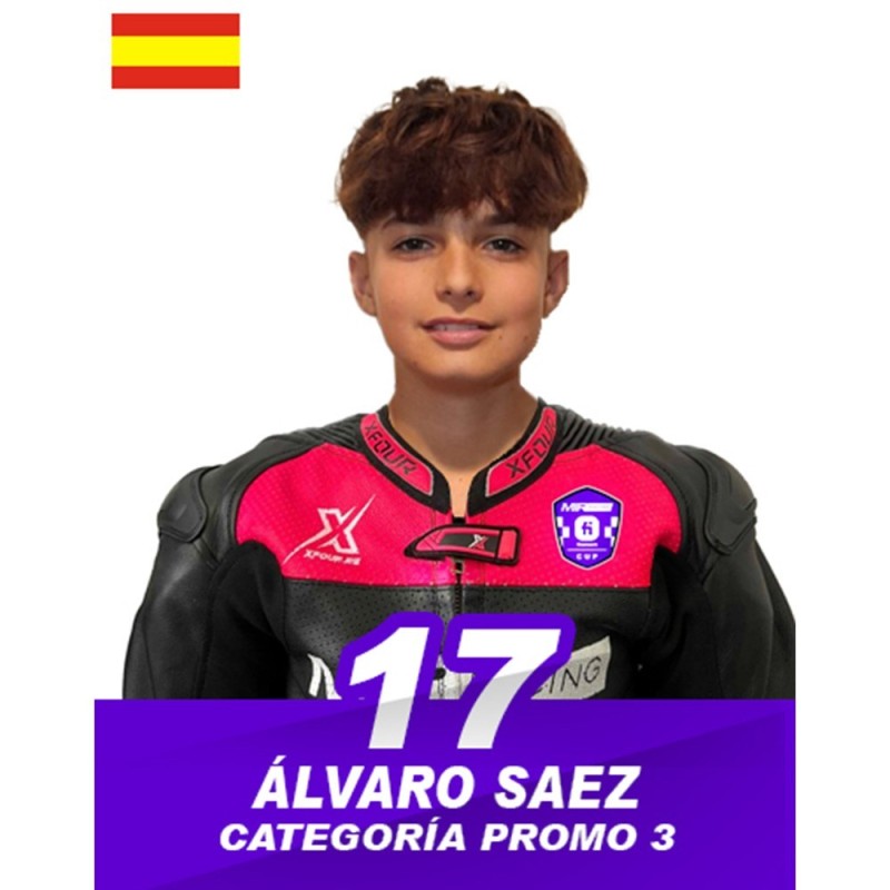 Álvaro Sáez es joven piloto español que afronta su primera temporada en la categoría Promo3 tras un destacado paso por la categoría GP10 en 2024, donde firmó una meritoria 10ª posición en la clasificación general. Su rendimiento constante y su capacidad para competir al más alto nivel en cada cita lo consolidaron como uno de los pilotos más prometedores del campeonato.