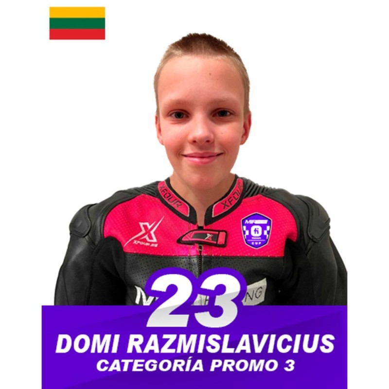Dominikas Razmislavicius, piloto lituano que da el salto a la categoría Promo3 en la temporada 2025 de la MIR Racing Cup, tras completar un año de consolidación en Moto5 donde terminó en la 15ª posición de la general. Su rendimiento a lo largo de la temporada 2024 reflejó una evolución constante, demostrando solidez, capacidad de adaptación y un fuerte compromiso con su desarrollo como piloto.