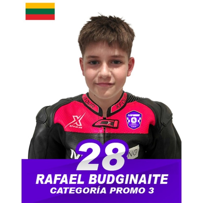 Rafael Budginaite, piloto lituano que se incorpora en 2025 a la categoría Promo3 de la MIR Racing Cup tras proclamarse campeón de la categoría GP12 en la temporada 2024. Su dominio a lo largo del año y su capacidad para marcar diferencias en pista lo convirtieron en una de las grandes revelaciones del campeonato, dejando claro que está preparado para afrontar nuevos retos a un nivel superior.