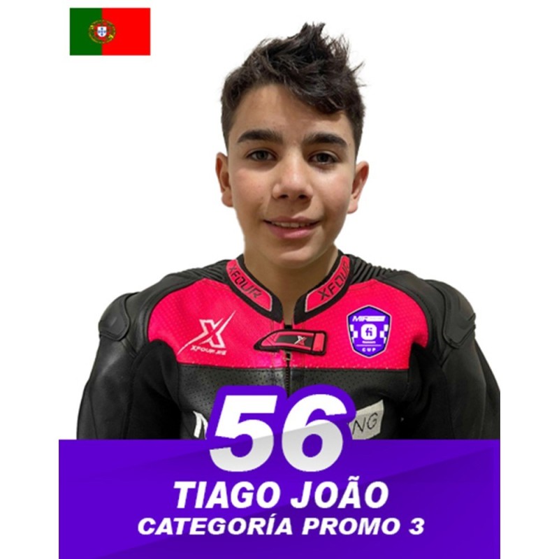 Tiago João es un piloto nacido en Portugal que arranca su segunda temporada en la categoría Promo3 de la MIR Racing Cup, con el objetivo de seguir avanzando en su evolución como piloto. En 2024 finalizó en la 18ª posición de la general tras un año de aprendizaje continuo y adaptación a una categoría exigente. Un resultado que repite su desempeño en 2023 dentro de la categoría Moto5, donde también concluyó en la 18ª plaza, demostrando una línea de crecimiento sostenida y un fuerte compromiso con su desarrollo deportivo.