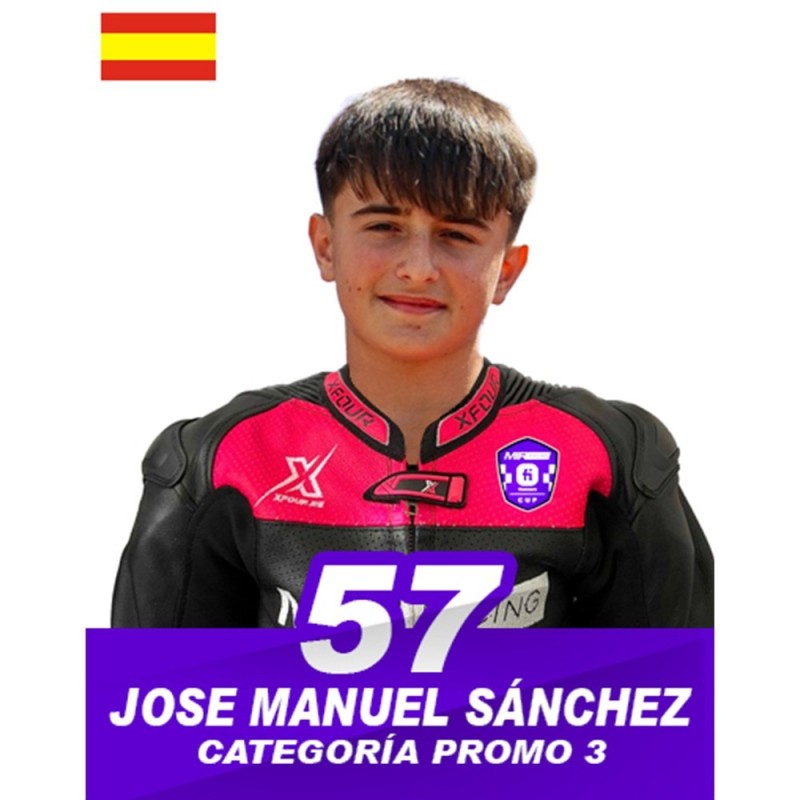 José Manuel Sánchez, piloto español nacido en Murcia, debuta esta temporada en la categoría Promo3 de la MIR Racing Cup tras firmar una sobresaliente actuación en 2024 dentro de la categoría GP12, donde se proclamó subcampeón. Su rendimiento a lo largo del año, marcado por la regularidad, velocidad y una actitud competitiva ejemplar, lo consolidó como uno de los grandes talentos emergentes del campeonato.