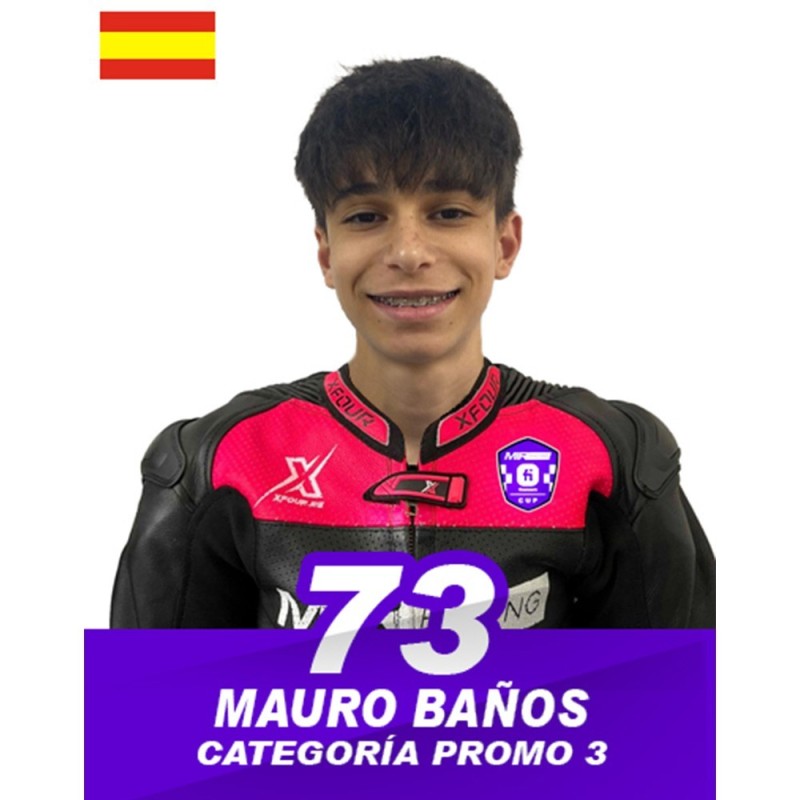 Mauro Baños, joven piloto andaluz, debuta en la temporada 2025 en la categoría Promo3 de la MIR Racing Cup tras haber tenido su primer contacto con el campeonato en 2024, donde participó como wildcard en la categoría Moto5. Aquel estreno puntual le permitió conocer de primera mano el nivel de exigencia del certamen y medir sus habilidades frente a algunos de los mejores pilotos del motociclismo base.
